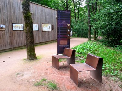 Totem; affichage; mobilier imitation rouille;porte document; dibond