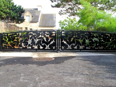 Portail; motif; découpe laser; fabriqué en bretagne; acier; thermolaquage