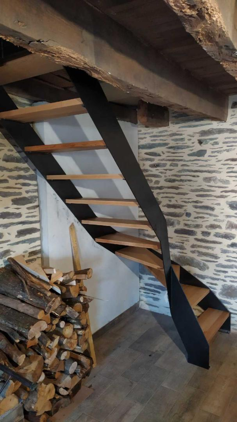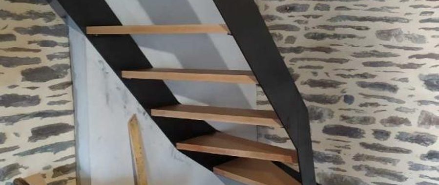 Escalier métal ciré + marche bois