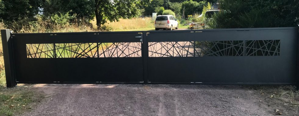 Portail acier avec un remplissage en tôle aluminium découpé au laser.