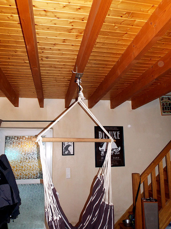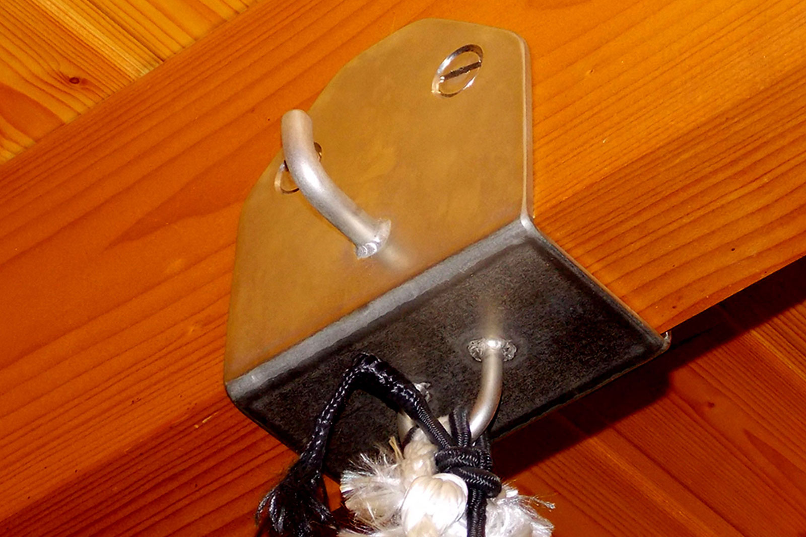 Support de chaise suspendu en inox. Créez un espace de liberté dans votre salon et suspendez vos fauteuils.  Ce système permet de faciliter le rangement de votre mobilier.