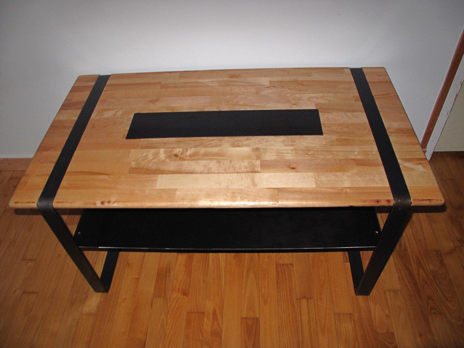 Table basse en acier vernis et plateau en bouleau vernis.
