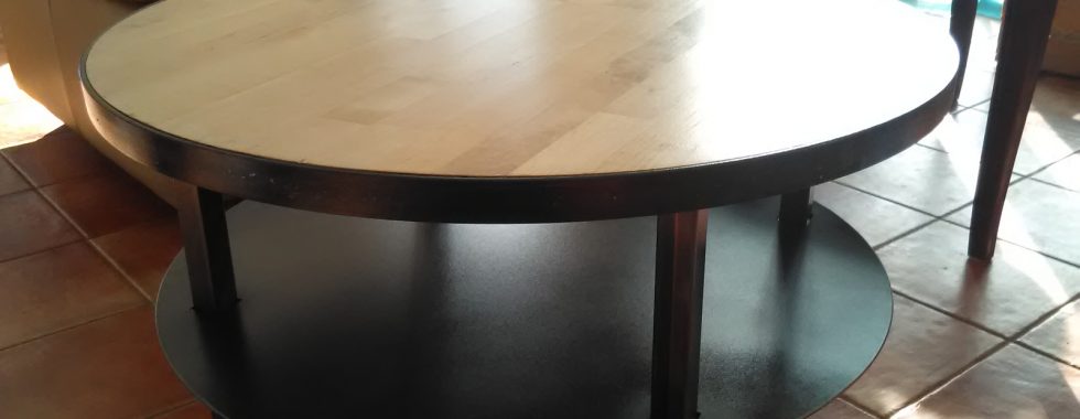 Table basse ronde bois et métal (plateau en bouleau)